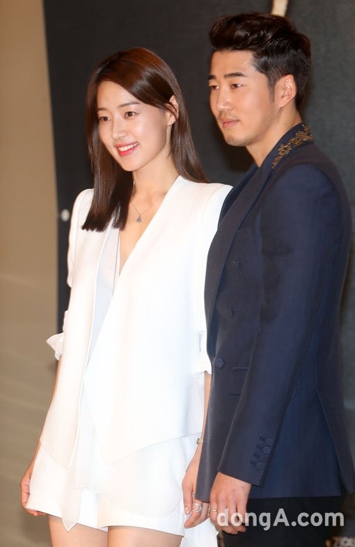 배우 한지혜(왼쪽)와 윤계상이 13일 오후 서울 영등포구 타임스퀘어 아모리스홀에서 열린 KBS 월화드라마 ‘태양은 가득히’ 제작발표회에 참석해 포토타임을 하고 있다.