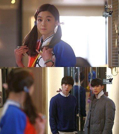 이어 천송이는 알록달록한 의상에 양갈래 머리를 한 고등학생 모습으로 깜짝 변신해 도민준과 동생 천윤재(안재현 분) 앞에 나타났다.