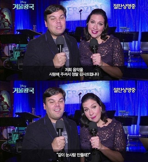 영상 속 로페즈 부부는 “여러분이 ‘겨울왕국’을 많이 사랑해줘 정말 신난다. 우리 음악도 사랑해 주셔서 정말 감사하다”라고 환하게 웃었다.