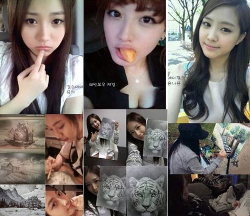 공개된 사진에는 아이돌 3대 화백으로 불리는 걸스데이 유라와 레인보우 재경, 에이핑크 손나은과 그들이 그린 그림을 비교했다.