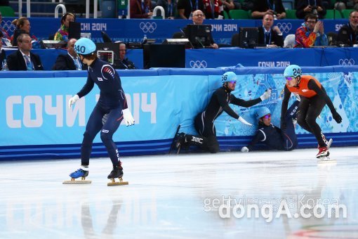 한국 대표팀은 선두를 지키며 결승 진출을 눈앞에 뒀지만 다섯 바퀴를 남겨둔 상황에서 아쉽게도 4번 주자 이호석이 미국 선수와 부딪히며 넘어지며 6분48초206, 3위로 레이스를 마감, 결승 진출에 실패했다.