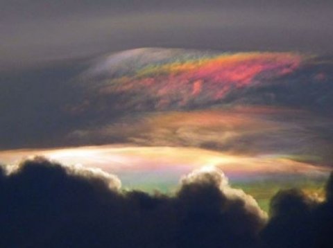 이 사진은 한 아마추어 사진작가가 해가 떨어지기 직전에 촬영한 것으로 사진 속 구름이 무지개처럼 형형색색 빛나고 있다.