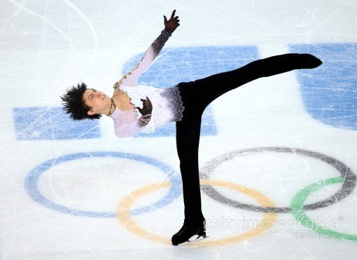 하뉴 유즈루(일본)가 15일(한국시간) 러시아 소치의 아이스버그 스케이팅 팰리스에서 열린 2014 소치 동계올림픽 피겨스케이팅 남자 싱글 프리스케이팅에서 연기를 펼치고 있다. 사진=GettyImages/멀티비츠