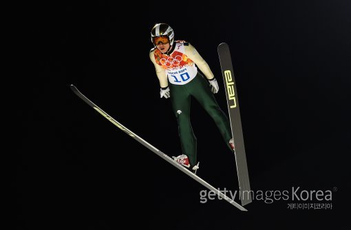 최서우가 16일(한국시간) 러시아 소치의 러스키 고르키 점핑 센터에서 열린 2014 소치 동계올림픽 스키점프 남자 라지힐 개인 1라운드에서 점프하고 있다. 사진=GettyImages/멀티비츠