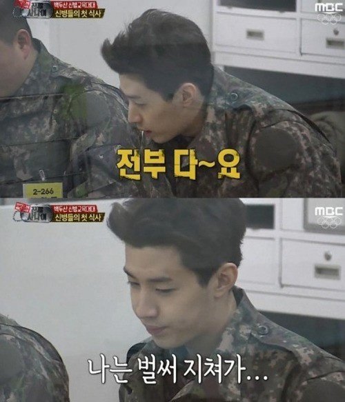 초코바를 몰래 먹다가 혼나기도 했고, 베레모를 잘못 써서 지적받기도 했다. 정신없이 혼나던 그는 점심 식사 도중에도 조교의 관심에서 벗어나지 못했다. 복장불량으로 밥을 먹던 중 혼이 난 것.