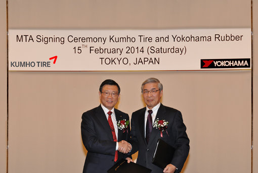 금호타이어(대표 김창규)는 지난 15일 세계 8위의 타이어 기업인 일본 요코하마와 글로벌 경쟁력 강화를 위해 기술 제휴에 대한 본계약을 체결했다고 밝혔다.