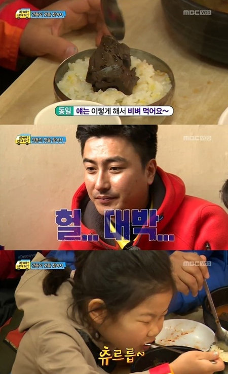 ‘아빠어디가’ 안정환이 성동일의 딸 성빈의 선지 해장국 먹방에 감탄했다.