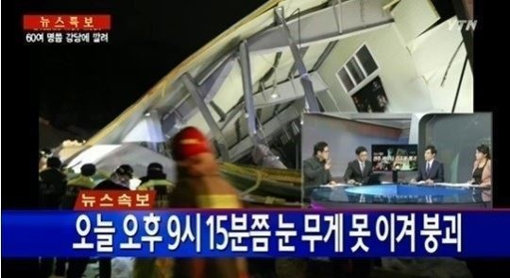 17일 밤 9시15분경 경북 경주시 양남면에 있는 마우나오션리조트 강당 2층이 붕괴됐다.