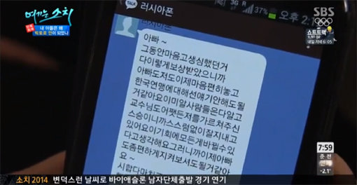 공개된 메시지 속 안현수는 "아빠. 그동안 마음 고생 심했던 거 다 이렇게 보상 받았으니까 아빠도 저도 이제 마음 편히 놓고 한국 연맹에 대해선 애기 안 해도 될 거 같아요"라고 말했다.