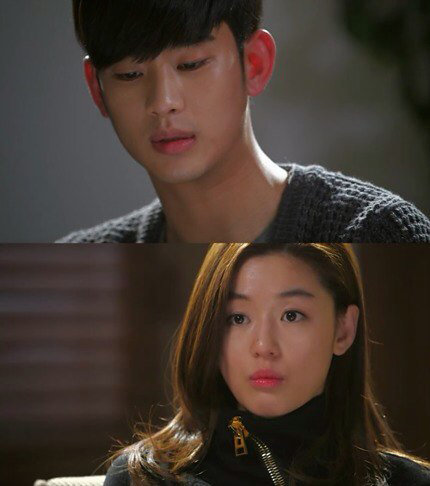 한편 천송이(전지현)와 산장에서 행복한 시간을 보내던 도민준(김수현)은 점차 초능력이 약해짐을 느끼고 불안해 한다.