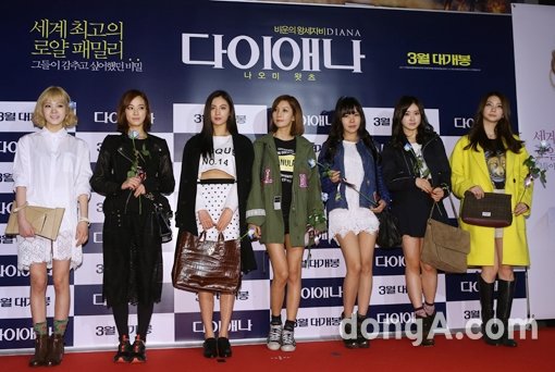 걸그룹 애프터스쿨이 19일 오후 서울 광진구 건대입구 롯데시네마에서 열린 영화 ‘다이애나’ VIP시사회에서 포토타임을 하고 있다.