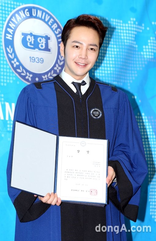 배우 장근석이 20일 오전 서울 성동구 한양대학교 서울캠퍼스에서 열린 2013학년도 한양대학교 졸업식에서 포토타임을 하고 있다.
