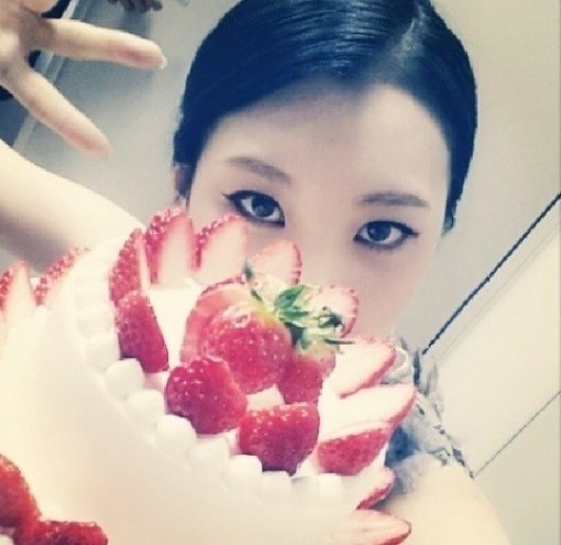 가수 선미의 딸기 케이크 셀카가 화제다.