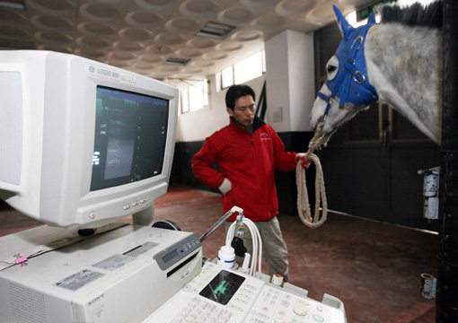 운동기 질환에 시달리던 경주마가 줄기세포 치료를 받고 있다. 지난해 경주마에 대한 줄기세포 치료를 통해 효과를 확인한 한국마사회는 3월부터 본격적인 연구에 뛰어든다. 사진제공|한국마사회