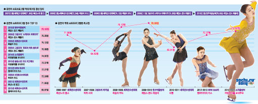 이날 김연아의 점수는 자신의 역대 5번째에 해당하는 고득점이다. 일본의 아사다 마오(73.18점)가 세운 국제빙상연맹(ISU)의 올 시즌 최고기록보다 더 높았다.