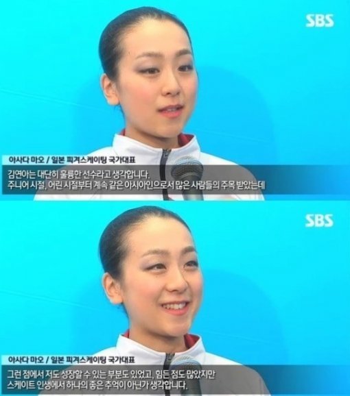 아사다 마오는 이후 진행된 인터뷰에서 10년지기 라이벌인 김연아에 대해 “김연아는 훌륭한 선수”라며 “주니어 시절부터 같은 아시아인으로 많은 사람들의 주목을 받았는데, 그런 점에서 성정할 수 있는 부분이 있었다”고 평가했다.