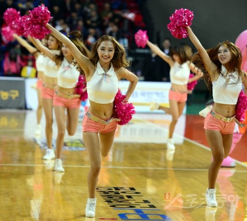 23일 오후 인천 삼산체육관에서 열린 ‘2013-2014 KB국민카드’ 인천 전자랜드 엘리펀츠와 안양 KGC 인삼공사의 경기에서 전자랜드 치어리더가 화려한 공연을 선보이고 있다.