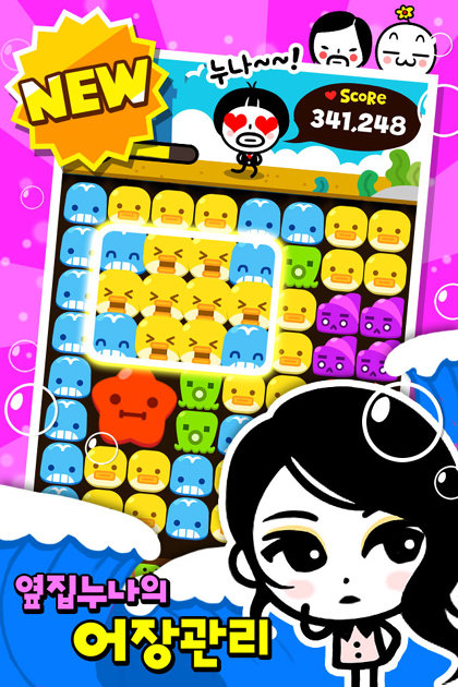 컴투스는 퍼즐게임 ‘돌아온 액션퍼즐패밀리 for Kakao’에 신규 미니게임 ‘옆집누나의 어장관리’를 추가했다. 다양한 블록 모양들 중 네 모서리에 같은 모양이 오도록 사각형 어장을 만들면, 어장 안 블록이 모두 소멸돼 점수가 발생하는 게임이다. 새롭게 선보인 ‘옆집누나’ 캐릭터를 활용하면 고득점 확률을 높일 수 있다.
