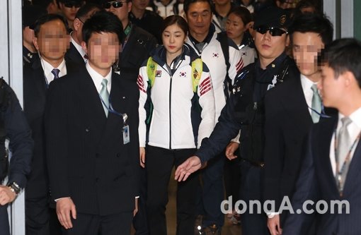 김연아 선수가 25일 오후 2014 소치 동계올림픽을 마치고 인천국제공항을 통해 입국하고 있다.