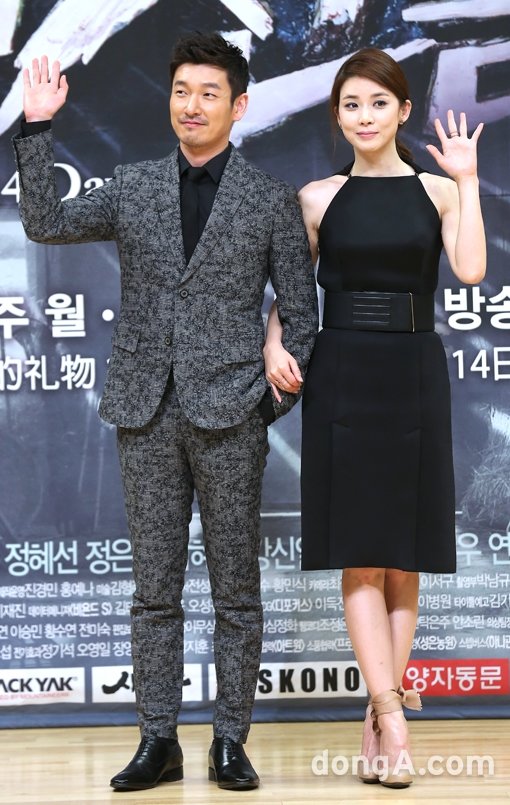 배우 조승우(왼쪽), 이보영이 27일 오후 서울 양천구 목동 SBS 사옥에서 열린 SBS 새 월화드라마 ‘신의선물-14일’의 제작발표회에서 포토타임을 하고 있다.