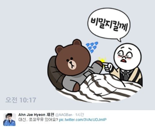 안재현은 27일 자신의 트위터에 “대신 초코우유 있어요?”라는 글과 함께 이미지 한 장을 올렸다.