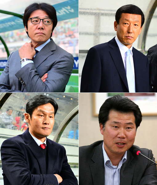AFC 챔피언스리그에 도전하는 K리그 클래식 사령탑들의 목표는 모두 같지만 방식은 제각각이다. 포항 황선홍 감독은 겸손함, 전북 최강희 감독은 전매특허인 ‘닥공’으로, 울산 조민국 감독은 공격이 가미된 철퇴로, 서울 최용수 감독은 기조 유지를 내세운다(맨 위 왼쪽부터 시계뱡향). 스포츠동아DB