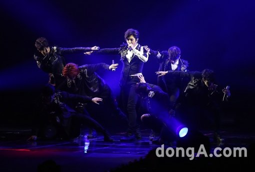 아이돌그룹 인피니트가 28일 오후 서울 송파구 올림픽공원 체조경기장에서 열린 ‘인피니트 월드투어 서울 앵콜 콘서트’에서 멋진 공연을 하고 있다.
