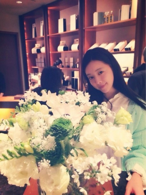 이 사진에는 홍수아가 민트색 가디건을 입고 꽃병 앞에서 화사한 미소를 짓고 있는 모습이 담겼다. 또한 그는 화장기 하나 없는 민낯에도 불구하고 깨끗한 피부와 글래머러스한 몸매를 뽐내 원조 베이글녀의 위엄을 뽐냈다.