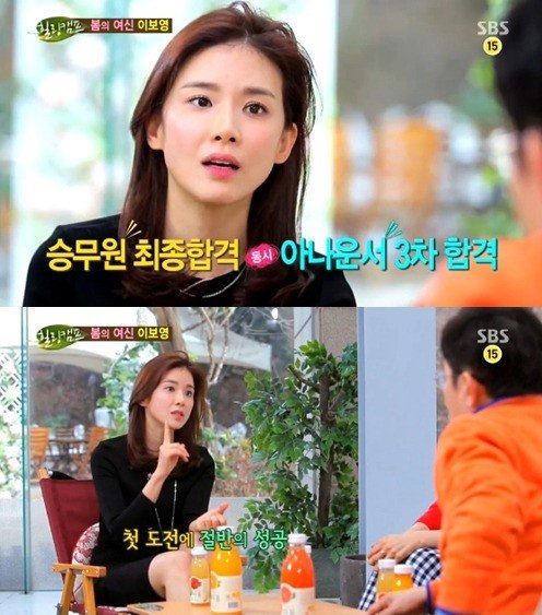 이보영은 “미스코리아는 본선 진출 후 탈락했고 MBC 아나운서도 최종 단계에서 탈락했다. 정작 진짜로 합격한 것은 승무원뿐이다”고 밝혔다.