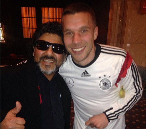 칠레와의 A매치 경기를 앞두고 독일에 입성한 루카스 포돌스키(29·아스널)가 디에고 마라도나(54)를 만났다.