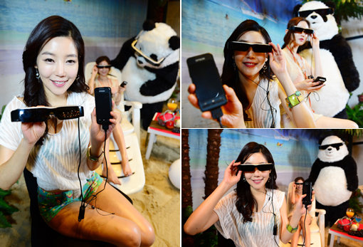 【서울=뉴시스】조성봉 기자 = 5일 오전 서울 강남구 CGV 청담 씨네씨티에서 열린 한국엡손 2세대 스마트 안경 ‘모베리오 BT-200' 공개 행사에서 모델들이 신제품을 선보이고 있다. ‘모베리오 BT-200'의 헤드셋은 88g으로 1세대 제품 ’모베리오 BT-100(240g)'보다 약 60% 가벼워졌으며, 안경부에는 카메라와 블루투스가 새롭게 탑재되어 사용자의 편의성을 한단계 높였다. 2014.03.05.suncho21@newsis.com <저작권자ⓒ 공감언론 뉴시스통신사. 무단전재-재배포 금지.>