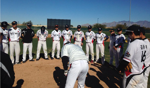 막내 구단 kt 위즈가 대만 2차 스프링캠프를 마치고 9일 귀국한다. 이후 대학, 프로 2군, 고양 원더스 등과 연습경기를 치르며 다음달 1일 퓨처스리그 개막에 대비한다. kt 선수단이 애리조나 1차 캠프에서 훈련 전 미팅을 하고 있는 모습. 사진제공|kt 위즈