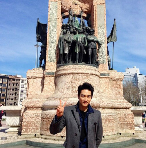 송승헌은 지난 4일 자신의 트위터를 통해 “탁심 광장에서(At Taksim Meydani)”라는 글을 올린 후 터키에서 촬영한 사진을 게재했다.