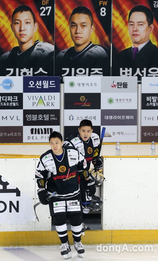 아이스하키 아시아그리 플레이오프전 한국 대명 상무과 일본 제지 크레인스의 1차전 경기가 8일 오후 서울 목동아이스링크장에서 열렸다.