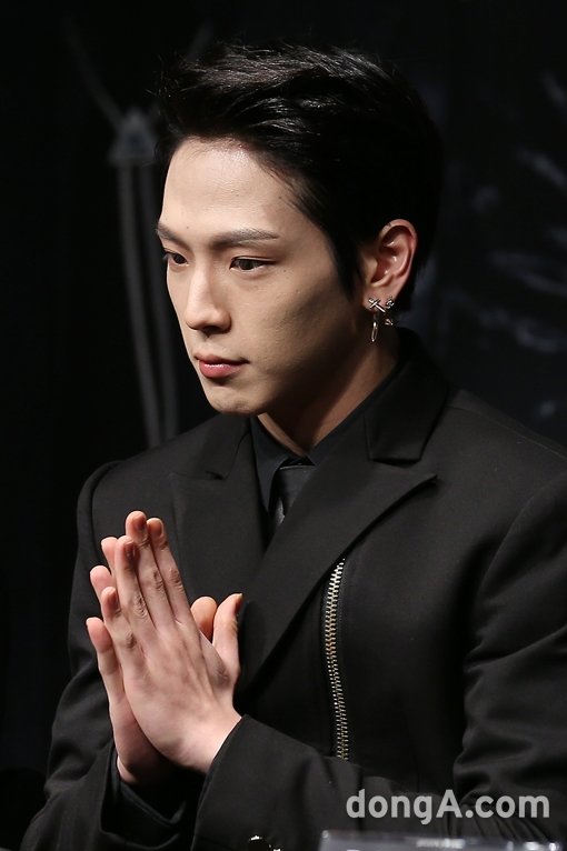 B.A.P의 멤버 힘찬이 9일 오후 서울 송파구 올림픽공원 에서 열린 기자회견에서 뱍수를 치고 있다.