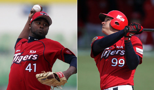 KIA가 올 시즌 명예회복에 성공하기 위해선 새 용병 마무리 하이로 어센시오(왼쪽 사진)와 타자 브렛 필(오른쪽)이 큰 힘을 보태줘야 한다. 일본에서 6년간 뛴 또 다른 새 용병 데니스 홀튼은 기량과 성적 면에서 어느 정도 검증이 됐다고 볼 수 있다. 어센시오와 필이 낯선 동양야구에 어떻게 적응할지가 KIA의 앞길에 무척 중요하다.