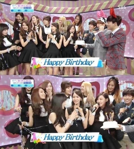 걸그룹 소녀시대 리더 태연의 생일파티가 ‘인기가요’ 생방송 중 열려 팬들의 이목을 집중시켰다.