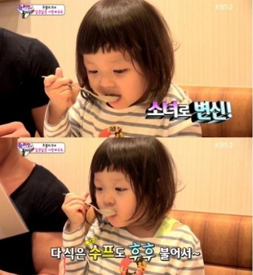 이날 추성훈은 두 아이를 데리고 한 레스토랑을 찾았고, 유토는 함박스테이크는 물론 치킨, 수프까지 단숨에 들이키는 ‘폭풍 먹방’을 선보였다.