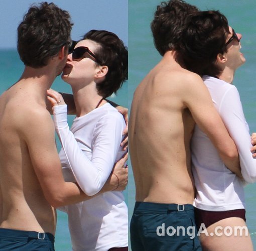 미국 연예매체 스플래쉬닷컴은 9일(현지시각) 마이애미 해변에서 남편과 애정행각을 벌이는 앤 해서웨이의 모습을 공개했다.