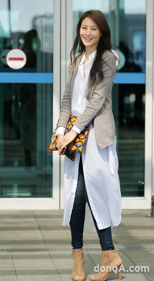 배우 수현이 10일 오후 외화 캔틴 아메리카: 윈터 솔져 글로벌 프리미어 레드카펫에 참석하기 위해 인천국제공항을 통해 출국하고 있다.