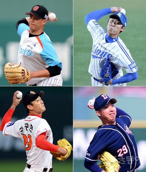 롯데 옥스프링-삼성 배영수-두산 유희관-SK 김광현(맨 위 왼쪽부터 시계방향으로). 스포츠동아DB