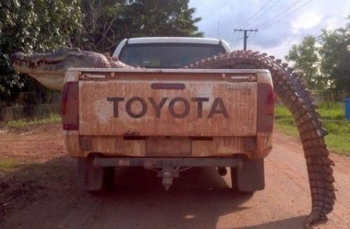 공개된 사진에는 픽업트럭에 실린 거대 악어의 모습이 보인다. 특히, 이 악어는 머리와 꼬리가 트렁크에 실리지 않을 정도로 거대하다.