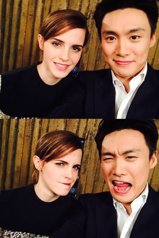 방송인 오상진과 할리우드 스타 엠마 왓슨의 셀카에 누리꾼들이 폭발적인 반응을 보냈다.