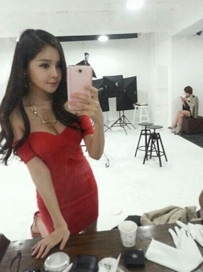 사진에는 한규리가 레드톤 드레스를 입은 채 몸매를 자랑하는 모습이 보인다. 이 사진은 한규리가 자신의 페이스북을 통해 공개한 것.