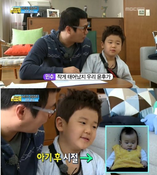 윤후는 자신의 몸무게를 보며 “이게 정상인거냐”고 물었고, 윤민수는 “정상보다는 조금 작게 태어난 편이다”라고 말했다.