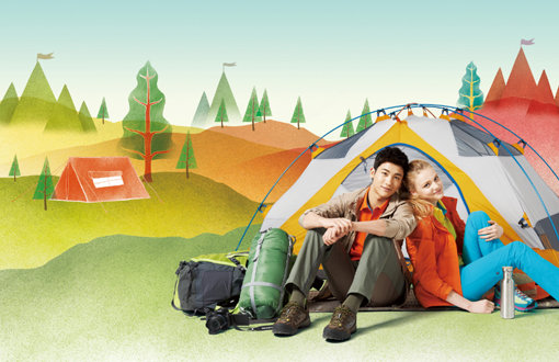 빈폴아웃도어는 자연 속의 고급스러운 캠핑문화를 의미하는 ‘글램핑’을 내세웠다. ‘글램핑 라인’은 텐트, 침낭, 매트, 코펠, 랜턴 등 글램핑을 즐기기 위한 5가지 필수 제품을 중심으로 구성됐다. 야외에서 숙박은 물론 가족단위 캠핑족이 휴식과 식사, 놀이를 즐기며 캠핑의 재미를 만끽할 수 있도록 해주는 제품들이다.