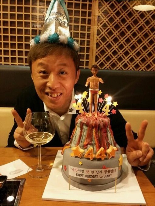 정준하의 팬들은 18일 생일을 맞은 그를 위해 최근 다이어트로 정용암이라는 별명이 생긴 정준하를 상징하는 용암 케이크를 준비했다. 특히 케이크 하단에 붙은 ‘용암처럼 핫한 남자 정용암!!’이라는 문구가 눈길을 끈다.
