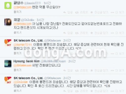 이후 각종 포털사이트 실시간 검색어에는 ‘SK텔레콤’ ‘SK 통신장애’ ‘SK텔레콤 고객센터’ 등이 상위권에 오르기도 했다.