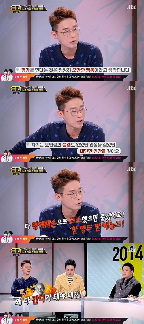 허지웅은 지난 20일 방송된 JTBC ‘썰전’에서 옥소리 복귀에 반대하는 비난 여론에 대해 입을 열었다.