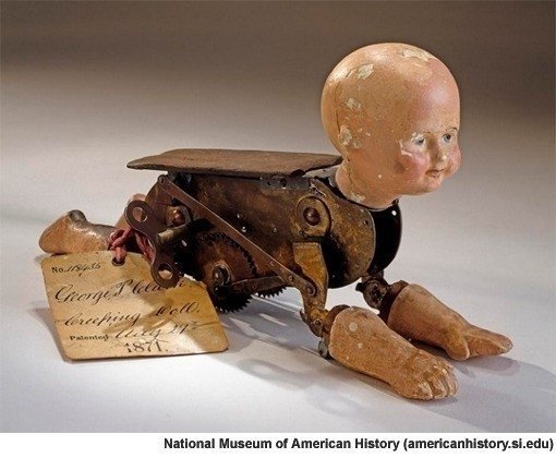 이 인형은 태엽을 돌리면 몸체가 앞으로 기는 기능을 가지고 있다. 조지 펨버튼 클라크라는 남성이 제작했으며 1871년에 특허를 받은 것으로 알려졌다.
